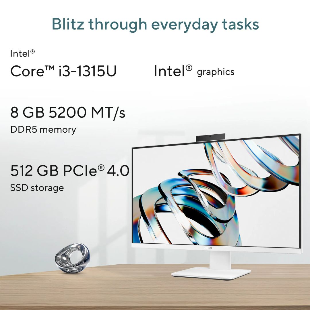 This All-in-One desktop runs on a 13th Gen Intel Core i3 processor, so everyday tasks feel fast and simple. Whether you are browsing, attending online classes, or working on documents, it works smoothly. Also, the 8GB DDR5 RAM helps with multitasking, while the 512GB SSD gives fast boot time and quick file access. As a result, you spend less time waiting and more time working.