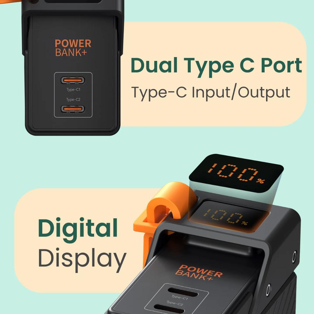 This powerbank comes with a massive 20,000mAh capacity, allowing you to charge a smartphone multiple times or power a tablet comfortably on a single charge. The dual Type-C PD output ports support simultaneous fast charging, so you can charge two devices at high speed without waiting.