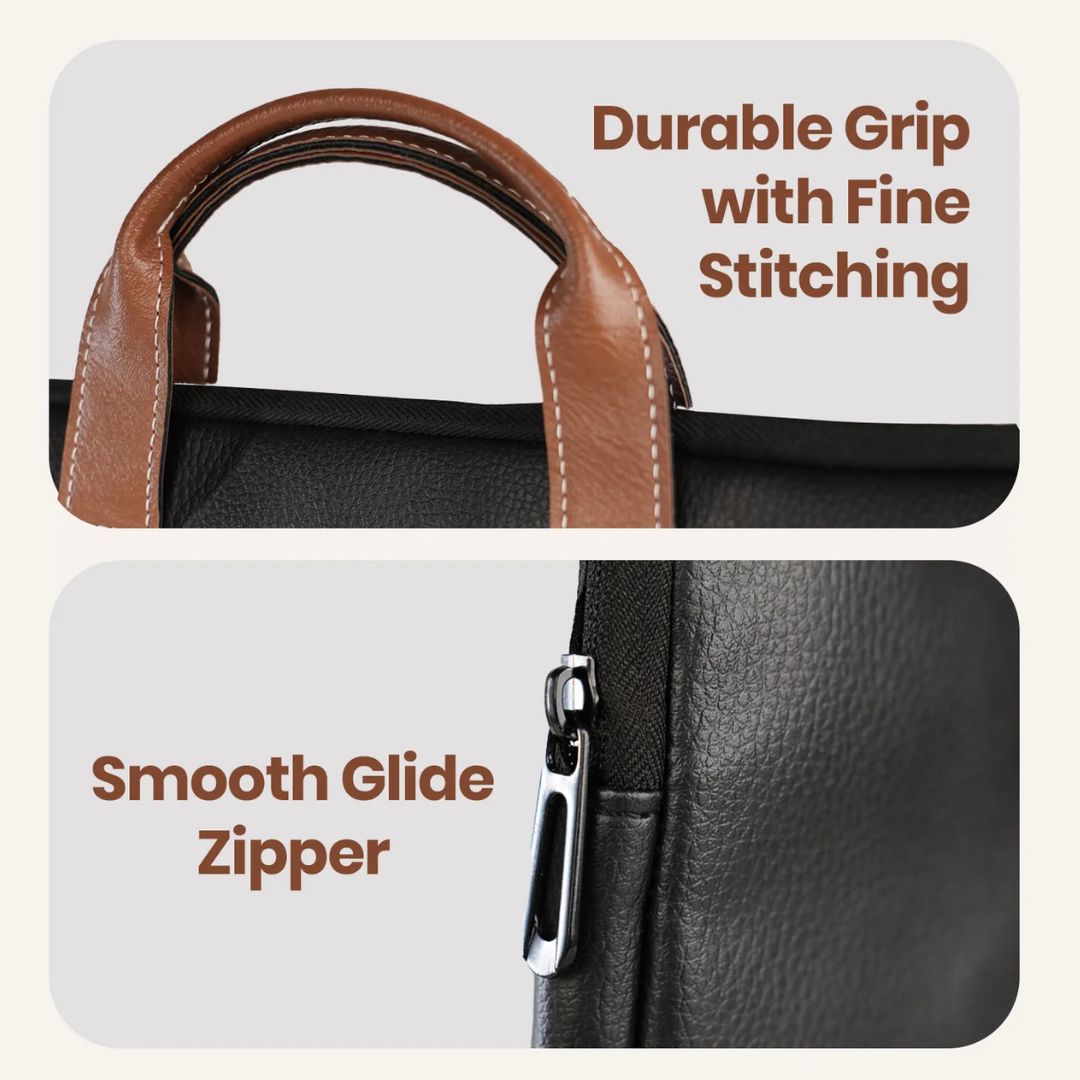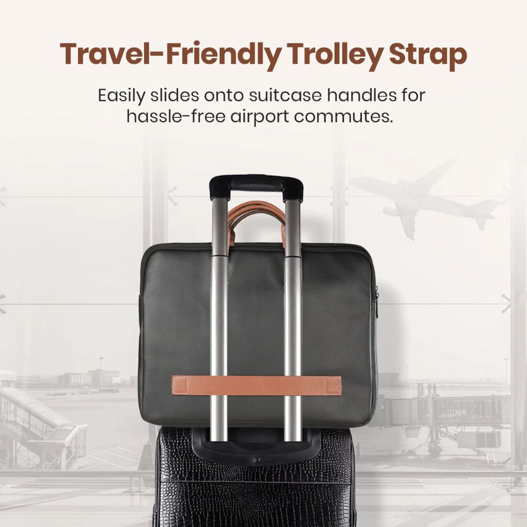 For frequent travelers, the built-in trolley strap makes airport commutes hassle-free by allowing the bag to slide smoothly onto suitcase handles. Reinforced handles with fine stitching and smooth-glide zippers ensure long-lasting durability for everyday use. Available in classic Black, Blue, and Brown colors, this laptop bag is a perfect balance of style and practicality. You can buy it online in India at a competitive price, with EMI and Debit Card EMI options available.