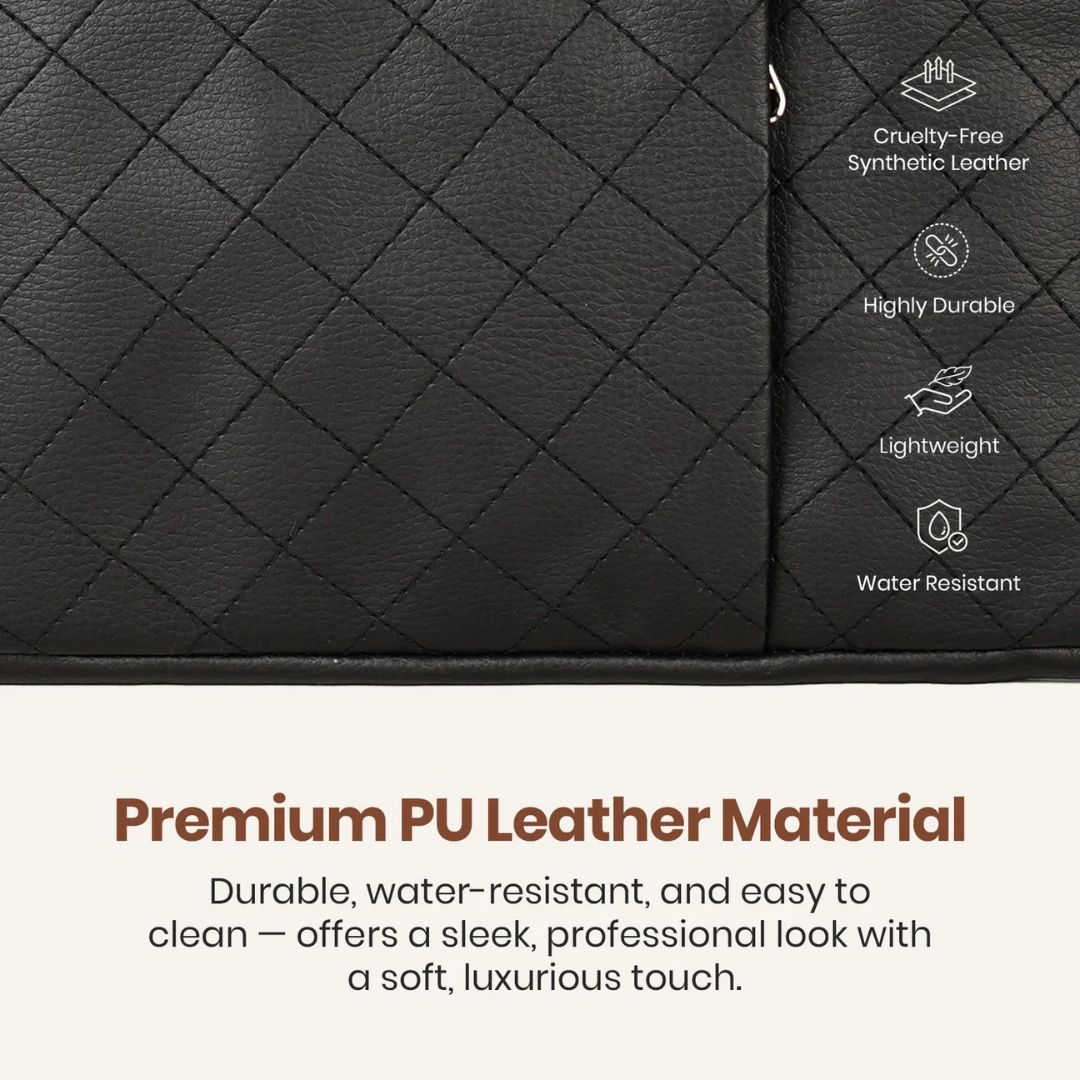 Designed for professionals and everyday commuters, the Portronics Encase 104 15.6 inches Laptop Bag (POR 2964) combines premium style with practical functionality. Made from cruelty-free PU leather, the bag features a water-resistant, lightweight, and durable build that suits office, college, and business travel needs. Its minimalist quilted design adds a refined look while keeping the bag compact and easy to carry.