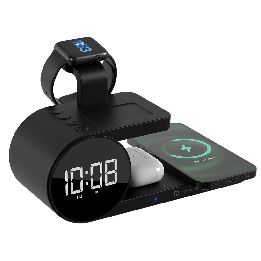 This wireless charger reduces cable clutter and combines multiple functions into one compact device. It saves space, improves convenience, and keeps your devices charged and accessible throughout the day and night.