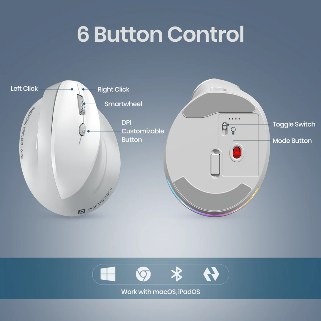 Portronics Toad Ergo 4 Rechargeable Vertical Mouse for Laptop