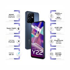 | Whats in the box | ‎Model Y22 Documentation, USB cable, USB Power Adapter, Sim eject Tool, Phone case, Protective Film (Applied) |